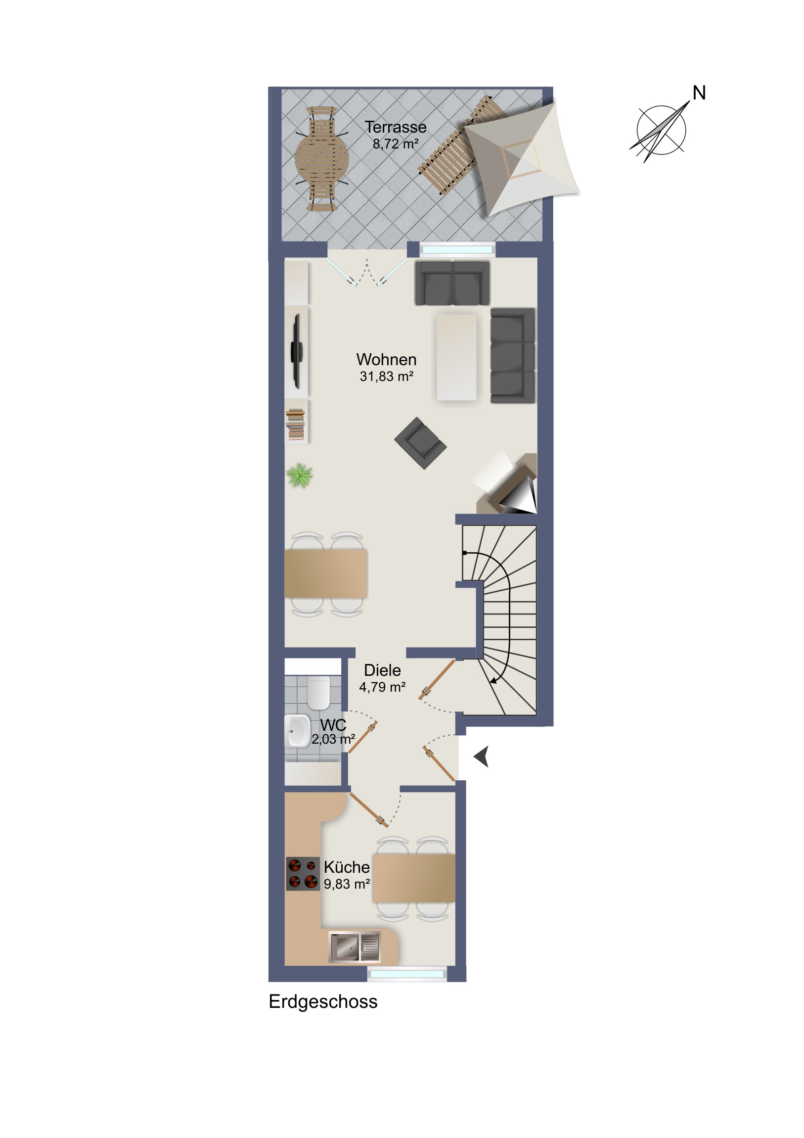 Typ: Doppelhaushälfte (nach WEG geteilt), 1 Terrasse, 2 Balkone