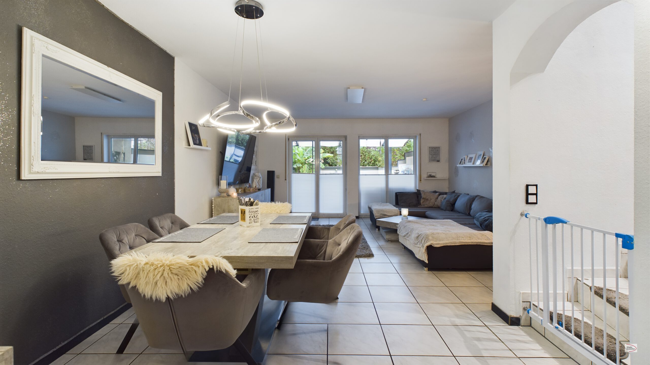 Die extravagante Doppelhaushälfte aus dem Baujahr 1996 mit ca. 123,48 m² Wohnfläche befindet sich in ruhiger Lage (Sackgasse) eines gewachsenen Wohngebietes und präsentiert sich in außergewöhnlichem Stil. Sie umfasst nämlich eine Haushälfte – getrennt nach WEG-Gesetz und nicht wie üblich per Grundstücksteilung. Das Gesamtgrundstück umfasst 442 m² und bietet insgesamt 2 Haushälften (Einheiten). Die jeweilige Wohneinheit befindet sich komplett im Sondereigentum – die WEG-Teilung bringt jedoch Vorteile mit sich wie z.B. Ersparnisse bei der Gebäudeversicherung oder auch der Grundsteuer. Sie verwalten sich ansonsten komplett autark.