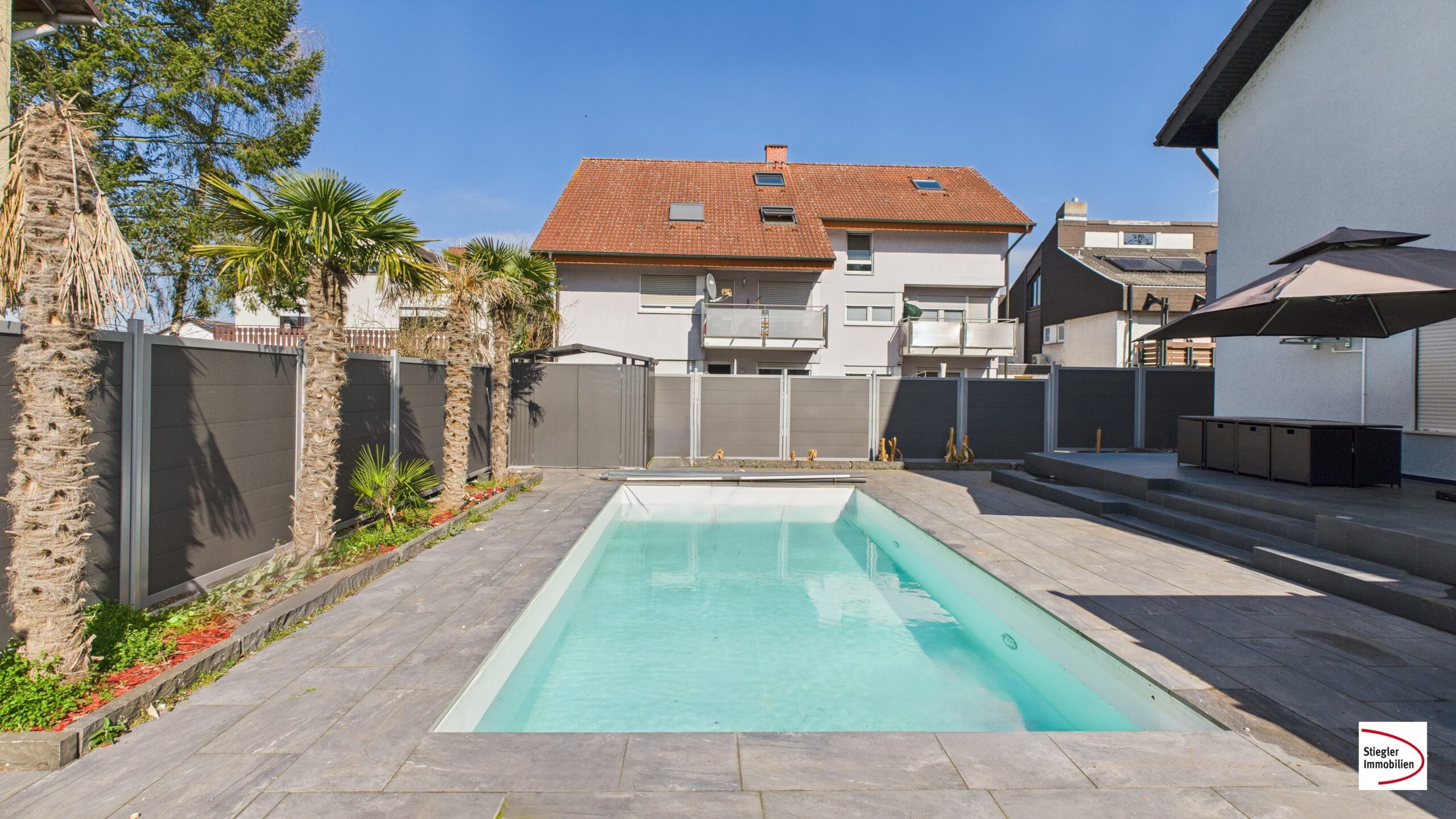Die großzügige Doppelhaushälfte aus dem Baujahr 1982 befindet sich auf einem Grundstück mit ca. 367 m² in einer verkehrsberuhigten Straße in Ortsrandlage von Ketsch. Mit ca. 236,29 m² Wohnfläche verteilt auf 6 Zimmer gehören Platzprobleme der Vergangenheit an. Highlight des Hauses ist der im Jahr 2024 massiv erbaute Pool, der mit 8,00 m x 4,00 Metern eine komfortable Größe bietet. Eine ebenfalls neu erbaute Terrassenanlage mit Außendusche sowie eine hochwertige Aluminiumumzäunung runden das Bild ab und sorgen für Urlaubsfeeling im eigenen Zuhause.
